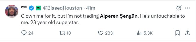 休媒:你们尽管嘲笑吧,但我们不会交易申京的,他对我来说是无可替代的,他是 23 岁的超级巨星。