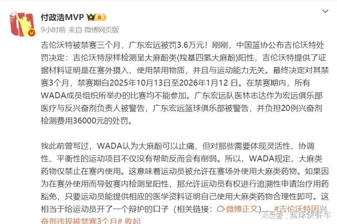 广东队方面,篮协则同样开出罚单,先是警告广东队,随后,他们又罚了广东队3.6万(垫付检测费)。对于广东队而言,这样的处罚结果,其实是可以接受的。甚至可以说,还是非常幸运的。毕竟,按照以往的管理,CBA球员被处罚,球队主教练或者总经理,大概率也会跟着被罚。这种案例,在之前已经发生了不少次。不过,这一次,杜锋和朱芳雨都没有被处罚,成功躲过罚单,这已经是不幸中的万幸了。