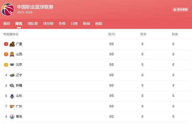 第13至第16依次是:青岛男篮、深圳男篮、吉林男篮、福建男篮
