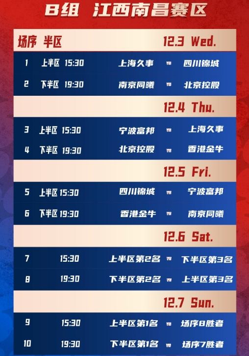 南昌赛区B组:上海、同曦、宁波、北控、四川、香港金牛。