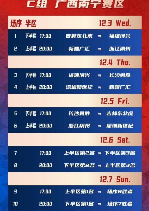 南宁赛区C组:新疆、吉林、深圳、福建、浙江、长沙勇胜。