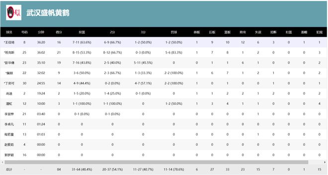 从个人数据上看,这场胜利的首功多半要归功于队长王佳琦。她仅在第一节就送出5次助攻,全场比赛11投7中高效拿下16分10篮板和12个助攻,获得WCBA本赛季开赛以来首个“三双”。与此同时,她还有3次抢断和1次盖帽,数据填满了统计表上所有栏目——除了那项WCBA从来没有人填上过的扣篮。