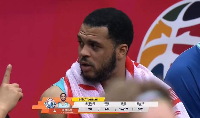 此番对阵南京同曦的比赛,威瑟斯庞简直就是一飞冲天了。他上半场就轰下了30分,全场打下来,拿下56分,占了全部得分的一半还要多。