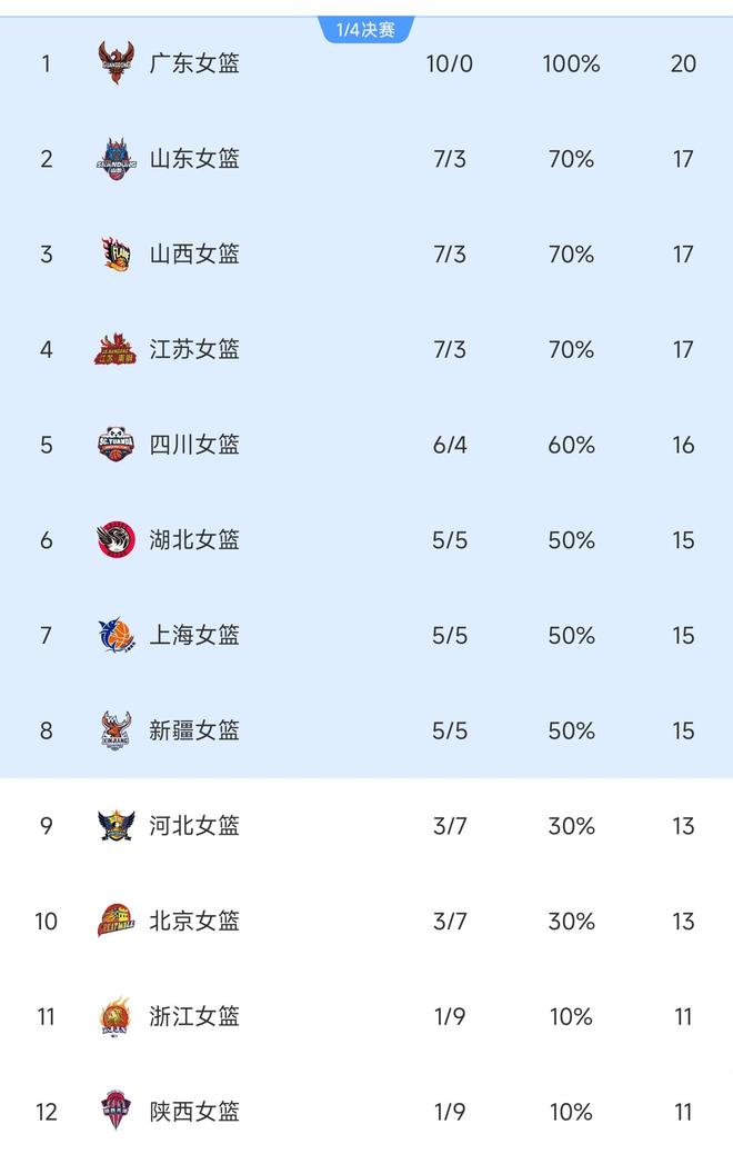 主要竞争对手里面,四川女篮中,李梦、韩旭出国,王思雨一直养伤,实力下滑。内蒙古女篮退出。如今来看,新赛季的WCBA呈现出来了新的局面:广东保持强势态势,十连胜一路领先。紧随其后的是山东、山西和江苏。这是最新的WCBA联赛积分榜: