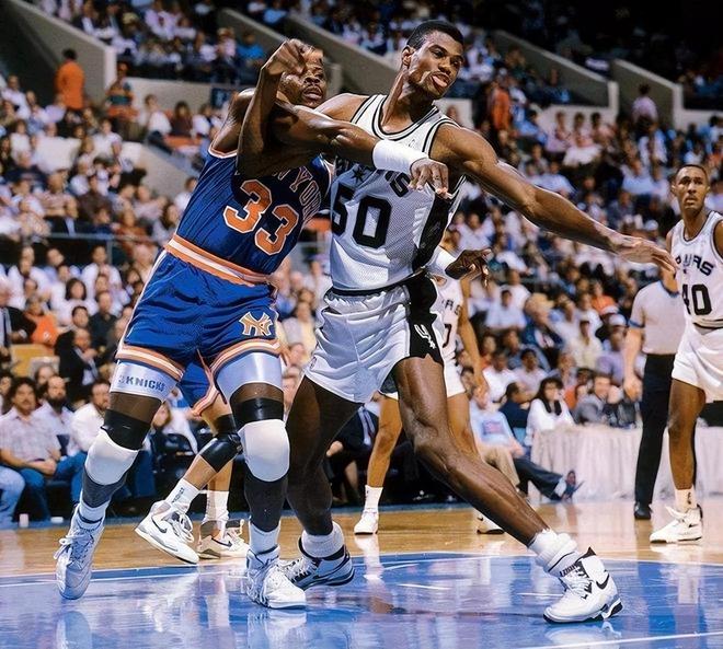 而且更令人动容的是,在季后赛中,他一直都带伤出场,虽然能力有所下滑,但却甘愿化身蓝领,辅佐阿兰·休斯顿、拉特里尔·斯普雷维尔的双枪组合,场均仍有13.1分、8.7个篮板的贡献。而尼克斯队也是上演了惊人的黑八奇迹,一路打进了总决赛。但这一次,尤因的对手是更为年轻的蒂姆·邓肯,和同为四大中锋的大卫·罗宾逊。