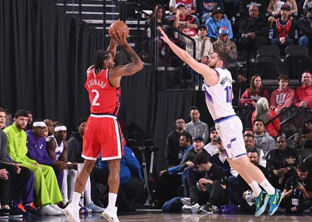 末节快船濒临绝境时,伦纳德就命中3分反超,然后他又连中3记三分,单人连续得到20分,爵士进攻端手感下滑,快船展现了窒息防守。防守端爵士又对不上战神卡,你谁来防守都没用。在卡子的立棍单打下,爵士直接被锤死。 哈登末节上来时,也是不抢卡子球权,直接输送炮弹让卡子抡个舒服。