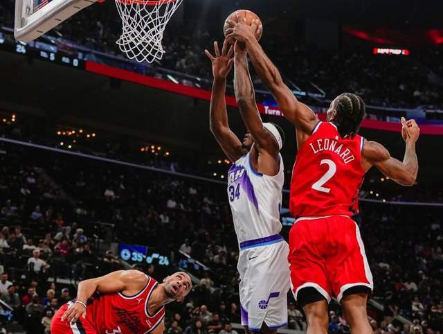 今天爵士很强,泰伦卢延续连胜的常规首发,大洛,科林斯,伦纳德,哈登和邓恩。在硬实力上快船和爵士不是一个级别,首节快船就31-17领先14分。但第二节爵士开始起势,半场追到只差3分。下半场,森萨博,威廉姆斯,李凯尔火力全开,爵士一度反超快船。就在绝命时刻,伦纳德站了出来,他在第三节末尾和末节,几乎一己之力打崩了爵士。