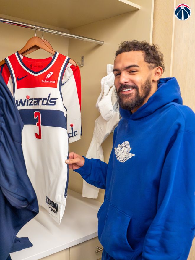 北京时间1月10日, 奇才和老鹰关于特雷-杨的交易正式完成。特雷-杨在新球队改穿3号球衣,第一时间亮相华盛顿,球队为他举办了新闻发布会。在发布会上,杨谈到了自己选择加盟奇才的原因,还称赞了球队的核心阵容。