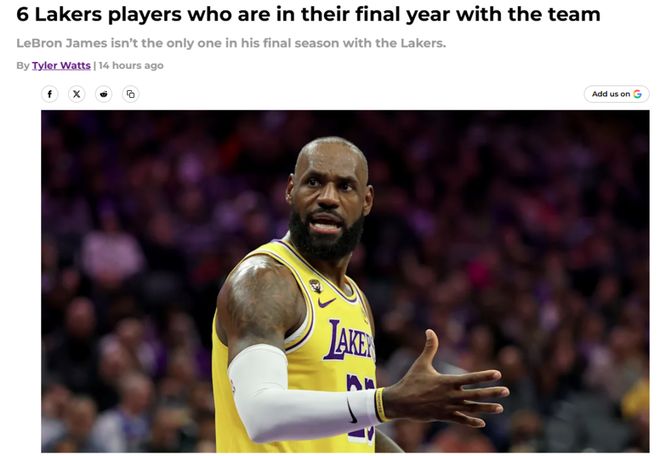 除陷入关系即将终结风波的詹姆斯之外,目前紫金军团中还有谁处于湖人最后一季?美媒《lakeshowlife》晒出6人名单,其中艾顿排第二。