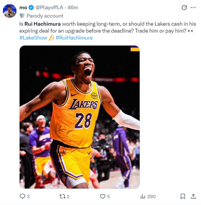 湖人媒体:此役打完后大家觉得八村是否值得球队长期留用?还是说湖人该在交易截止日前利用他的合同进行交易换取更好的球员?还是继续留着跟他续约?
