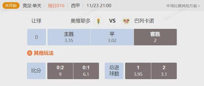 竞足 周日016西甲奥维耶多VS巴列卡诺