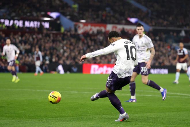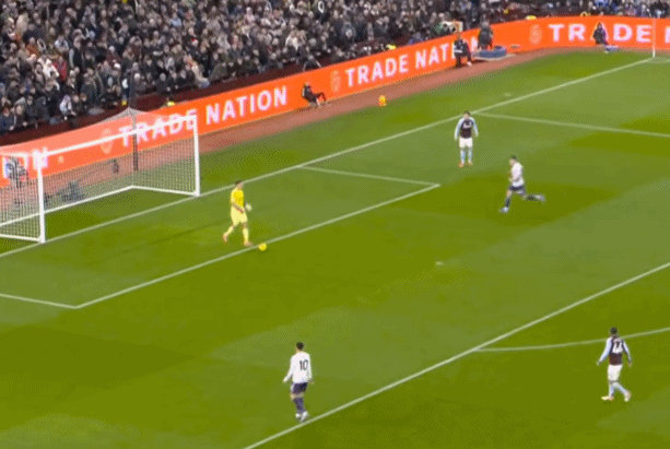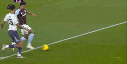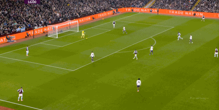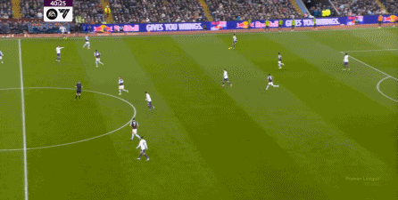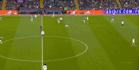 这里都是没问题的,但到了前场,芒特在背身的情况下被奥纳纳顶掉,球权转换,阿斯顿维拉开始向前: