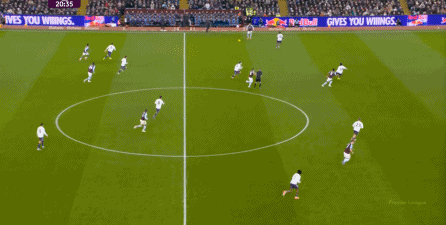 包括第二球也是一样,前戏依旧是维拉吸引曼联压迫,然后用长球连接前场,还是拉出空当之后,由麦金带出转移到弱侧的进攻: