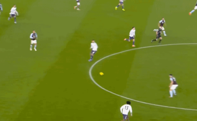 一个年轻中卫在压力下带球,身侧的队友都被维拉从身后压迫,其实只能试着直传中锋,然后希望他造个犯规,从而让海文有时间回位,连库尼亚都是如此建议的: