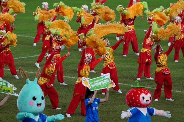 10月18日,演员在中场休息时表演。 当日,在江苏南京举行的2025江苏省城市足球联赛(“苏超”)半决赛中,南京队主场与泰州队在常规时间1比1战平,通过点球大战,泰州队晋级决赛。 新华社记者 李博 摄