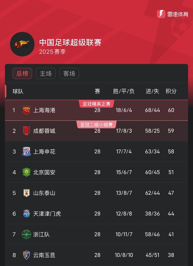 雷速体育10月26日宣 中超联赛今天结束了第28轮的争夺,本轮中超前四全部“翻车”,海港、成都、申花、国安本轮均未取胜,在还有2轮赛季结束的情况下,前三之间仅差2分,而国安彻底退出争冠行列。
