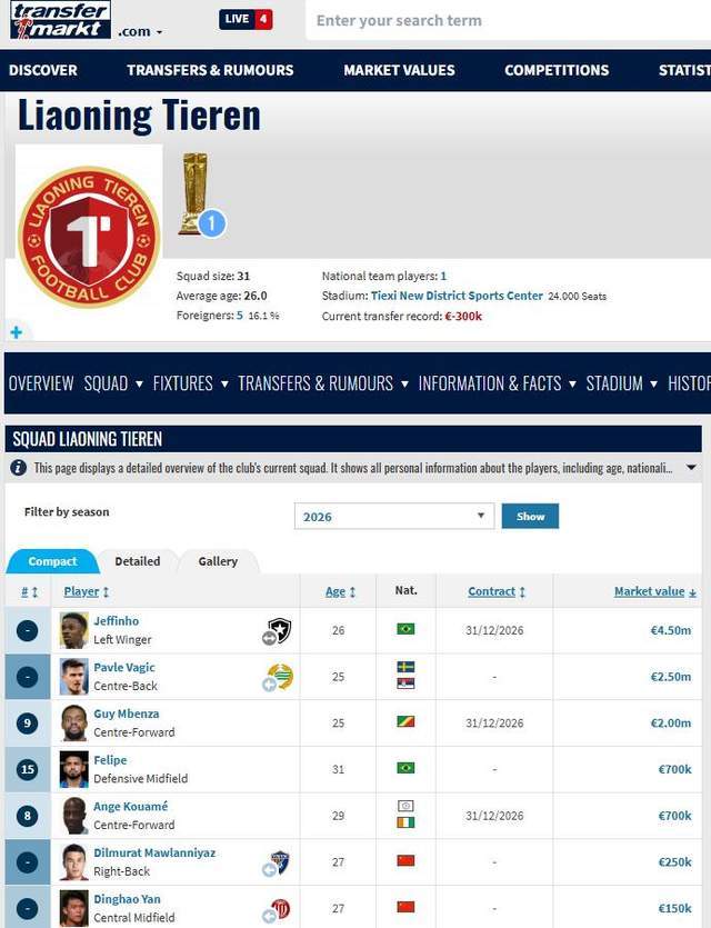 更恐怖的是,全队德转即时身价已经达到1186万欧,作为一支中超升班马,竟然直接排进了前6名,仅次于申花、海港、泰山、国安和成都蓉城,超越了浙江、云南玉昆、天津津门虎等10支中超劲旅,非常值得期待。