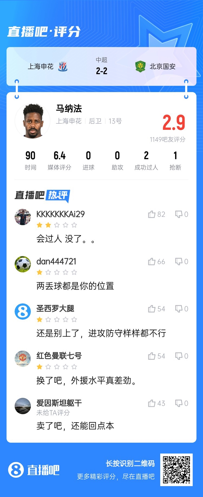 申花第一个丢球,马纳法在定位球防守中冒顶,造成身后的林良铭头球破门。